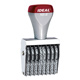 Character height is 1/8". Stamp contains 8 number bands. Each band contains the numbers 0-9 and one blank space. Self-Inker with a sturdy metal frame. Thousands of quality impressions before re-inking. Available with black ink.