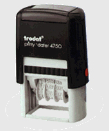 Self inking die plate dater with various text plate sizes available. Simple setting of date with drive wheels.